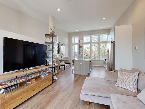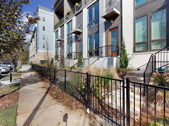 Built in 2021, 4Forty4 features top floor living with desirable design features including vaulted ceilings up to 14 feet and oversized casement windows providing natural light and city views. The gourmet kitchen features a 10-foot island with quartz countertops, and the top-floor kitchen and living areas spill onto the covered loggia, offering an outdoor entertainment setting. Hardwood stair treads and hard surface flooring run throughout all living spaces. The middle floor features a laundry closet and two bedrooms each equipped with custom closets and full bathrooms. Storage space and a garage on the first floor. Located in the Old Forth Ward across the street from Parkway-Angier Park and walking distance to Ponce City Market, O4W Park, Eastside Beltline, Central Park, Piedmont Park and Midtown. Perfect location if you are just moving to Atlanta or looking for prime in-town living. *Option to rent furnished for additional $1k/mo. Renter is responsible for utilities including water, power, trash, recycling, internet. Security deposit due at signing. No smoking allowed indoors. Small pets (up to 20 pounds) permitted. Must follow all rules and regulations in accordance set by the homeowner's association.