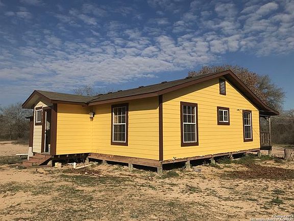 Bring your family and horses to this peaceful 10.337 acre property surrounded by beautiful vintage oaks and a small serene pond. 3 bedroom 2 bathroom with rustic porch, chicken coop and outbuilding, propane gas for stove and water heater. Turkey, deer, hogs...hunting allowed on property, great for weekend hunting retreat. Conveniently located 15 miles from San Antonio even closer to shopping. Approach to property is so gorgeous, this little jewel won't last long.