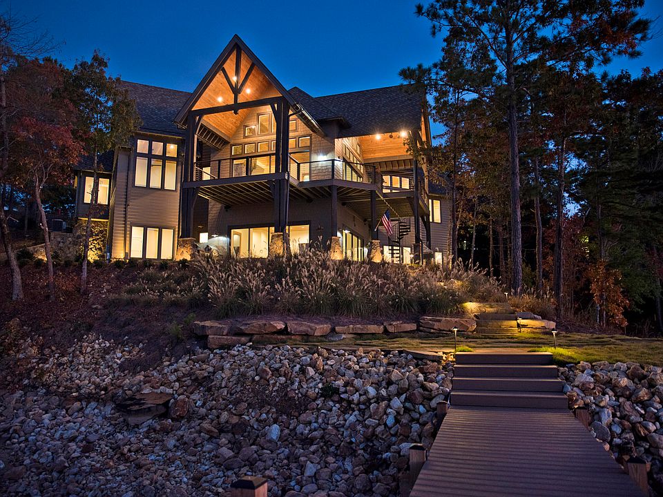 Breathtaking 2021 new construction on the Northernmost waterfront point of The Ridge. Exquisite design. Top-drawer features: Westin full-glass doors. Subzero fridge & freezer, Wolfe microwave drawers in BOTH full kitchens, Scotsman nugget ice machine, Cove dishwasher. Bowers & Wilkins interior/exterior sound system. 1300+/- under-roof deck/patio/porches.12 basement height. Custom-built tempered wine closet in basement w/ space for an up to 400 bottle collection. Pella energy-efficient windows. Wellborn custom cabinetry. Jawdropping white oak ceilings on main-level & basement + basement bar. Above the garage: finished bedroom, playroom & kitchenette. Outdoor kitchen. 2-slip boat dock with lifts + floating dock. Sandy beach area + 230+/- waterfrontage. Firepit peninsula