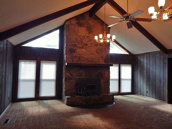 Spacious home just outside city limits of Guntersville in the desired Georgia Mountain community. Located on two large corner lots and only minutes away from Lake Guntersville, hospital, therapy center, shopping and more. Features: stone wood burning fireplace w/ insert, vaulted living room w/ exposed beams, plenty of storage, newer appliances, new vinyl flooring in kitchen, study, new shower door, stone & cedar exterior, sun room, deck, new windows, full unfinished basement and more.
