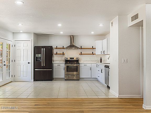 Charming with Lots of Character! This Cottage has been COMPLETELY renovated in 2023. New luxury vinyl plank flooring, kitchen cabinets, lighting, interior and exterior paint, newer vinyl window package, HVAC serviced, and much more! Prime downtown location in Camp Verde within walking distance to all the shops, restaurants, Rec center, Fort Verde, etc. The top-of-the-hill location provides beautiful views of the downtown, Red Rocks of Sedona & the White Mountains. Fully fenced backyard with a dogrun. Large Tuff Shed with 2 separate storage rooms plus an additional workshed/workshop. Lots of parking and plenty of room for RV/large trailer storage. Alley access in backyard. Large covered patio. NO HOA! STR's possible. Buyer verify. Listing agent is related to the seller. Must See!