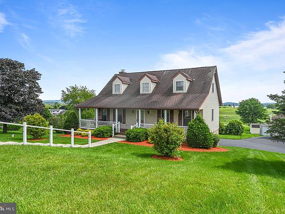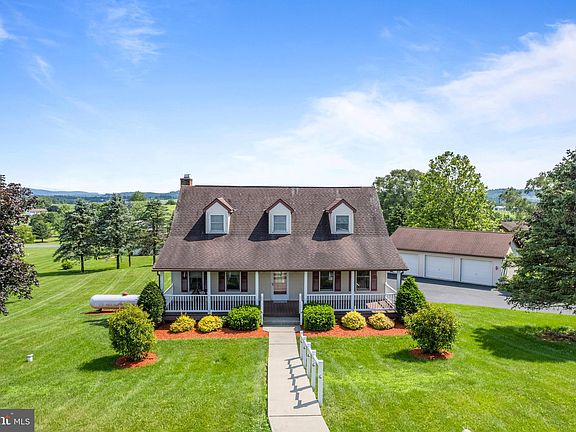 Public Open House on Thurs 7/13 4:30-6:30pm. This is a nice and really spacious country home that has been very well maintained. Large 2-story/Cape Cod style home with 4 bedrooms and a wonderful detached 3-car garage. (plus 1-car basement garage) You'll really appreciate the relaxed front porch with swing as well as the rear deck with awning. The deck overlooks the entire bucolic countryside and will provide hours of relaxation time. As you enter the home you are greeted by a large living room that goes through to the huge eat-in kitchen. Plenty of counter workspace as well as plenty of cabinets. There is a large bow window at the kitchen table designed to let you enjoy that view every single day. The large bright family room is a nice surprise. It leads out to the deck and features a wood burning fireplace. This could also serve as a dining room at holidays, etc. Another surprise is a bedroom on the main level. This could be used for an in-law suite or perfect home office. The second floor has lots of space too. There is space at the landing that could make a nice pay area or desk area. Large owner's suite with en suite bath which includes a shower. Two more nice sized bedrooms and a hall bath with tub/shower complete the second floor. There is framing already started for the basement to be finished. The home comes with a generator. The home is heated by a number of sources. There is propane hot water on the main level with multiple zones, and electric baseboard heat throughout the home. (propane tank is owned) Very nice lot and location. You're in a neighborhood but still very much in the country. If you need a large 3 car-garage and plenty of space in a home this one is for you. 1-yr Warranty included with acceptable offer.