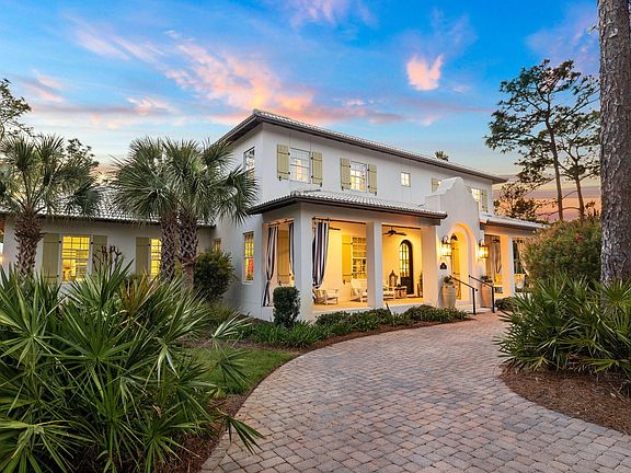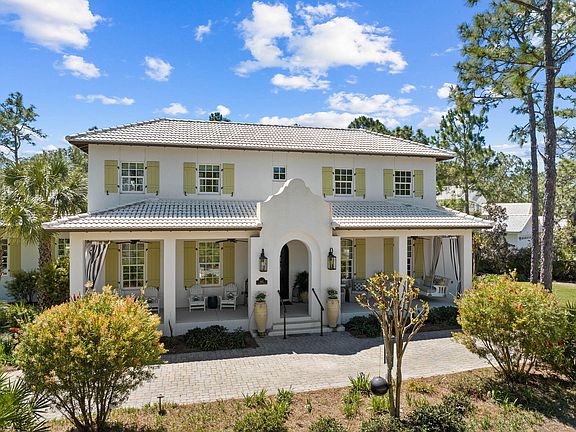 Discover a true entertainer's paradise right in the heart of Seagrove Beach on 30A! This meticulously designed 3-bed, 3.5-bathroom stunning Mediterranean Villa is located just minutes from the beautiful beaches of 30A in the gated community of Somerset Bridge at Seagrove. Offering luxury estate living at its' finest, this peaceful coastal retreat is primely positioned on an oversized pie-shaped lot that has been masterfully designed with impeccable landscaping and privacy in mind. Relax on the expansive front porch offering unobstructed views of protected Point Washington State Forest without seeing neighbors on either side. Experience the ultimate backyard entertaining oasis with huge patio and multiple seating area and a custom heated, gunite saltwater pool/spa with expanded lanai cage.