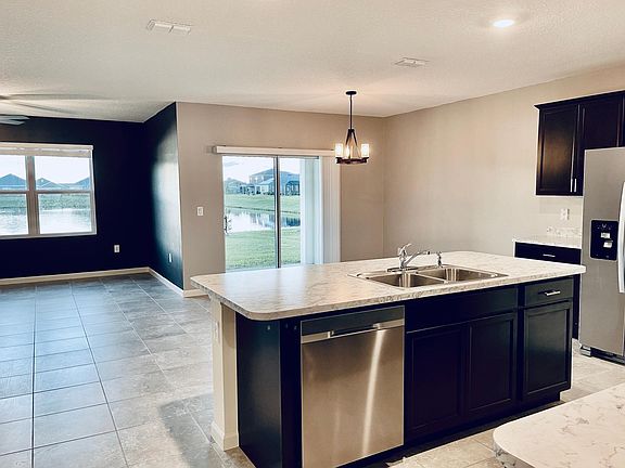 Spectacular brand new ranch-style lakefront smart home offering 4 bedrooms and 2 baths with an open floorpan. This is one level living at its finest. The large kitchen is highlighted by a generous center island that opens to the dining area and family room overlooking a beautiful lake. Huge backyard to enjoy evening sunsets and quality family time. Gorgeous tile floors, high-end SS appliances, lots of closet space, featuring a charming farmhouse style! Security system and smart home features throughout. Includes washer/dryer as well.