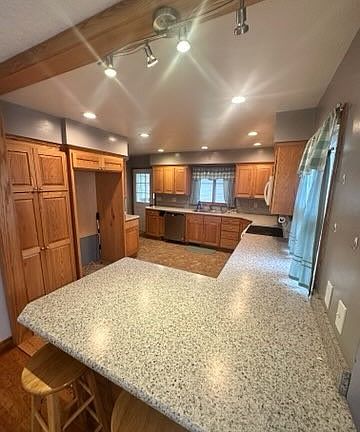 This 3BR 2 full bath home offers thoughtful updates and desirable features throughout. The garage is partially insulated and equipped with both gas and water hook-ups. Inside, comfort is ensured with a new A/C (2022) and a furnace blower replaced in 2025. The renovated kitchen includes a stove, microwave, and dishwasher, with soft-close cabinetry, a spacious single-bowl sink, and abundant storage. The main level bathroom has been partially updated with fresh paint, a new toilet, vanity, tub siding, and flooring, while the basement bathroom features new paint and vanity. Extras include a commercial-size tanning bed with new bulbs installed in 2023 (less than 200 hours of use) and a washer purchased new in 2020. The basement offers walk up access.