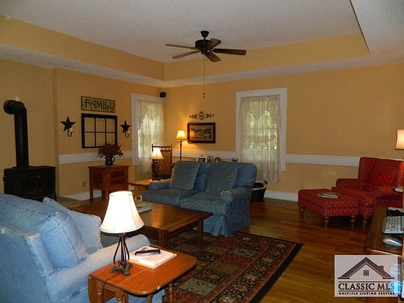 Charming 5 bedroom 2.5 bath home surrounded by 48.51 beautiful acres. If you are looking for your own private retreat, this home is for you. The home was built in 1990 but has the feel of an early 1900's home. Enter the home from the covered front porch into the long hall that goes from one end of the house to the other. The large living room is to the left of the hall. Plenty of room to have fun family get togethers. Stay warm and cozy in the winter around the wood burning stove. The dining room is big enough for a banquet table. The spacious eat-in kitchen has custom cabinets, granite counter tops and tiled floors. There are beautiful hardwood and pine floors throughout the home. The second floor features 4 large bedrooms and 1 bath. The 3rd floor is the master suite with bedroom, reading nook, master bathroom and a hall leading to the office. Off the back of the 1st and 2nd floor are two massive screened porches that run along the whole backside of the home. They over look the creeks and pond that are behind the home. The 2nd floor also has a balcony that over looks the front yard. The three stories sit on top of a full unfinished basement. There is a 25 x 32 ft shop that is insulated and has electricity. There are also 2 big barns on the property. If you want horses, there are two pastures available. This property is perfect for a mini farm. Cute chicken house comes with its own hens ready to lay eggs. If you love to hunt, there are plenty of deer roaming through the beautiful hardwoods & pine trees. Roads cut through the property make it a great place to ride your 4-wheelers. This property has everything you need. Only 30 minutes to downtown Athens and the University of Georgia.