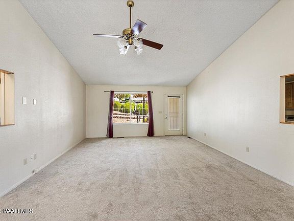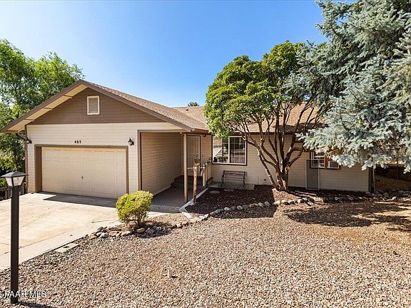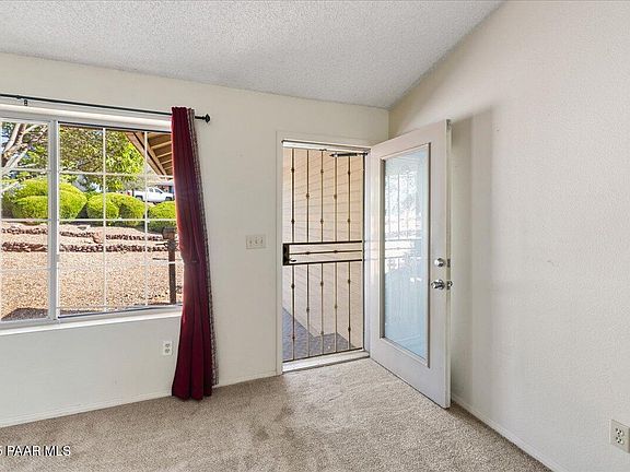 Nestled on a quiet dead-end street in the sought-after Taylor Hicks neighborhood, this charming Prescott home boasts an exceptional location and just a touch of TLC could make it truly shine. Surrounded by towering trees, vibrant shrubs, and mature fruit trees, the property offers a serene, park-like atmosphere. Inside, the bright and airy living room welcomes you with vaulted ceilings and large windows that fill the space with natural light. Adjacent to the living room is the dining area, and then the Arizona Room that is framed by windows on three sides and provides the perfect spot to relax and take in the lush backyard surroundings. The kitchen includes a suite of black appliances, highlighted by a brand-new 4-burner gas range, and offers plenty of potential for personalized updates.