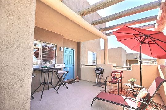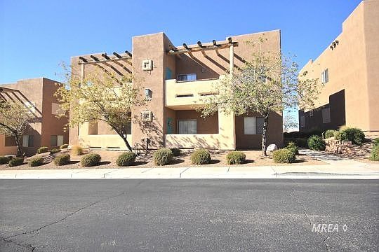 This turnkey condo offers Excellent Views of the Valley and some of the most beautiful sunsets from the front covered patio. Inside you will find an open concept living area, that is warm and inviting and perfect for quiet evenings or entertaining. There is also a covered Patio at the back of condo off Master Bedroom to enjoy morning sun and afternoon shade. Unit also has 2 separate Storage closets..Owners and guests can enjoy all the amenities at Mesquite Vistas clubhouse which includes pool and hot tub, tennis, workout facilities, pickle ball, Horseshoes and much more. This condo comes with everything...Bring your clothes and enjoy the Mesquite sunshine!