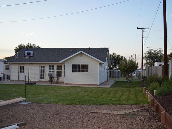 Great location for this nice home , with lush yards and play ground surrounded with beautiful block fencing yard all under auto water system , several grow boxes with tomatoes , cucumbers ,asparagus. and more!! fruit and shade trees, large storage building this it insulated, lots of cement around home with drive way and porch's, 3 bd 2 bt storage room large kitchen and great room, home is in super shape, Easy to show .