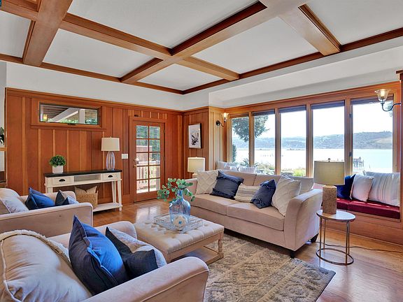 Welcome to your private oasis with 100+ feet of private beach on .69 of an acre. Enjoy breathtaking water views from every living area in this meticulously crafted home designed for luxury & serenity.This Craftsman style home features a waterfront living room built-ins, soaring windows & a stone fireplace for cozy nights indoors.Chef’s kitchen boasts 3cm granite countertops, Monogram appliances, wine refrigerator, walk-in pantry, gas range, a massive island to entertain & open flow to the dining area & built-in wet bar.Enjoy 1 bed & bath on the main level & a 2nd bedroom/office + half bath with a private deck.The dreamy primary suite is complete with a seating area & kitchenette, private balcony, a spa-like ensuite bath offering 2x sinks, a walk-in shower, dual shower heads & a massive walk-in closet. Enjoy 2 additional bedrooms including 1 with a connected office & private deck, & a hallway bath. Exceptional features include hardwood flooring, coffered ceilings, stained glass, recessed lighting, RV parking & storage.Gorgeous outdoors offer multiple decks with views, garden areas, tranquil fountains, a pergola covered patio with built-in BBQ + sink, firepit & direct walking trail/private beach access.Come see what coastal living can truly be like at this one-of-a-kind property!