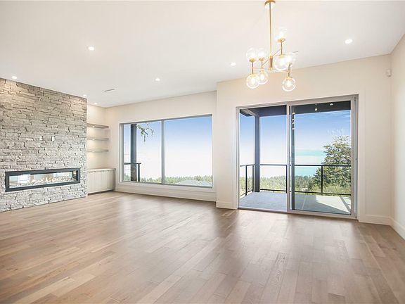 ONE-OF-A-KIND main level entry home (w/ legal suite) offers stunning, panoramic ocean views over the Salish Sea & mainland mountains. Designed with the remarkable ocean views in mind this 4,100 + sq. ft. custom home has a wall of windows oriented to exceptional ocean vistas. The great room boasts hardwood floors, 10-foot-high ceiling and a modern linear fireplace The gourmet kitchen will satisfy the most demanding of cooks. It includes quartz countertops and Bosch stainless steel appliances The prep kitchen includes a LG slide in gas range with a high-volume extraction fan. The spacious dining area takes a smart and casual approach with its placement next to the kitchen – large family meals and entertaining will be a breeze. Sliding glass doors invite you to the spacious sundeck - this will be your favorite spot to relax and enjoy the fabulous sunsets over the ocean at the end of the day. The private master suite is a dream come true - it includes “his and her†...