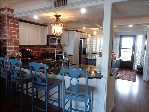 AMAZING condo overlooking the phase 3 pool, private beach and Gulf of Mexico. It does not get any better than this! Remodeled practically from top to bottom. Kitchen has large island, additional cabinets, pantry, broom closet, drawers for pots and pans. Beautiful cabinetry with granite countertops. Brick accent walls add a unique touch. Dry bar with shelving, washer and dryer closet, living/dining combo and enclosed lanai offer an amazing view of the Gulf. Guest bedroom- waterfront view, guest bath has walk in whirlpool tub, master bedroom has incredible water view, access to enclosed lanai, large walk in closet, his and her sinks, large walk in shower and two extra linen closets. UPDATED ITEMS: 2015 whirlpool tub, 2014- 13.5 seer AC, 2014 storm rated windows and sliders, 2012 hot water heater, 2012 master bath remodel, 2007 Kineticos water softener, 2007 kitchen remodel, 2007 new kitchen appliances, 2007 rest of remodel including designer ceiling accents, crown molding, indirect lighting, wood laminate throughout & plantation shutters. Phase 3 residents have access to private beach, phase 3 pool (directly behind this unit), grills, clubhouse with game tables, library, fitness, tennis, boat ramp, bocce ball, putting green. 24 hour security. Please inquire if interested in Shed. Under building parking for one car, guest parking avail and designated storage locker. Sq footage after porch was enclosed approx 1336 sq ft (Buyer to verify). Appointment only.