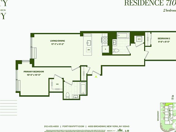 A world of wonder awaits at Forty Six Fifty; a stunning collection of brand new studio, one, and two bedroom homes in Inwood, overlooking Fort Tryon Park and The Cloisters at the northern tip of Manhattan. Striking architecture and sustainable design by Arden Group deliver a lifestyle that exceeds expectations, marrying the quiet elegance of Inwood with seamless access to the rest of the city. Biophilic features like a living green lobby and landscaped rooftop offer a home in-tune with nature. Lush terraces and manicured gardens allow for a sense of escape from the grind, while some of the city's most beloved park spaces provide the ideal backyard. Go beyond the ordinary, at a lifestyle oasis that features stunning interiors and extraordinary amenities, all with panoramic park and river views. Enjoy meticulously-crafted residences with generous interiors and state-of-the-art finishes, as part of an experience in truly holistic living that goes beyond and above anything that has come before. Upfront fees to be paid, not included in the monthly rent, are: Application fee: $20 per application Holding fee: $500, applied to the first months rent, refundable within 72 hours if cancelled Security deposit: Equal to One Months Rent Pet Fee: $400 non-refundable Pet Rent: $50 per month per pet Storage fee: $75 - $125 per month Bike storage fee: $15 per month per bike Residents are responsible for electricity- submetered based on usage, billed monthly Rose Associates is the exclusive broker/agent for the Landlord (Landlord's Agent) for this property. This advertisement is not intended to create any other agency relationships between a real estate licensee and the Landlord. Prospective renters, their brokers and/or agents understand that neither the Landlord nor Landlord's Agent will charge or collect fees to a prospective renter in connection with this property except for fees as permitted by law and disclosed above. Neither Landlord nor Landlord's Agent assume responsibility for any brokerage fees incurred by a prospective renter in connection with this property under any direct agreement they have entered into with another real estate licensee. This listing is being advertised to prospective renters only and should not be re-published.