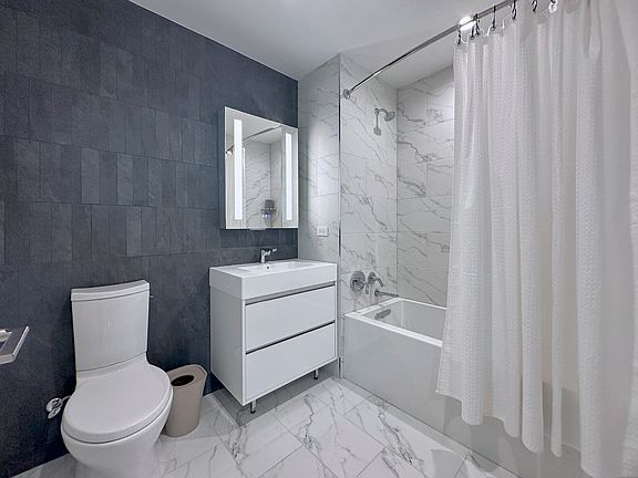 A world of wonder awaits at Forty Six Fifty; a stunning collection of brand new studio, one, and two bedroom homes in Inwood, overlooking Fort Tryon Park and The Cloisters at the northern tip of Manhattan. Striking architecture and sustainable design by Arden Group deliver a lifestyle that exceeds expectations, marrying the quiet elegance of Inwood with seamless access to the rest of the city. Biophilic features like a living green lobby and landscaped rooftop offer a home in-tune with nature. Lush terraces and manicured gardens allow for a sense of escape from the grind, while some of the city's most beloved park spaces provide the ideal backyard. Go beyond the ordinary, at a lifestyle oasis that features stunning interiors and extraordinary amenities, all with panoramic park and river views. Enjoy meticulously-crafted residences with generous interiors and state-of-the-art finishes, as part of an experience in truly holistic living that goes beyond and above anything that has come before. Amenity Features Include: Double Height Wood-Paneled Lobby, with Stone Fireplace Feature Wall and Green Wall Package Room Amenity Lounge with Co-Working and Individual Phone Booths Private Lounge with Demonstration Kitchen Children's Playroom Pet Spa Resident Storage Available Bicycle Storage Available Onsite Garage Parking Available Game Lounge with Billiards, Pinball, Shuffleboard, Foosball, Video Games, Projector Screen and Wetbar Smart Lending Library Fitness Center offering Precor Equipment and Peloton Bikes Yoga Room Basketball Court Landscaped Terrace with Outdoor Lounge, Pool Table, Chaise Lounges and Barbecue Grills Residence Features: Soaring Ceilings Over 9 Luxury White Oak Vinyl Wide Plank Flooring Oversized VIEW Smart Windows Complimentary Blackout Roller Shades in Bedrooms In-Home Bosch Washer/Dryers Smart Keyless Home Entry Oak Veneer Custom Designer Vanity with Stainless Steel Pulls White Solid Surface Countertops Contessa Dama Porcelain Tiled Floors and Wet Walls Grey Waterfall Mosaic Tiled Porcelain Feature Wall Calacatta Porcelain Tile Baseboards Kohler Polished Chrome Fixtures Mirrored Medicine Cabinets with Integrated Lighting GE Stainless Steel Appliance Package with Induction Range Designer White High Gloss Cabinetry with Stainless Steel Pulls and Undercabinet Lighting Calacatta Capri Quartz Countertop and Backsplash Kohler Pull-Out Faucet in Vibrant Stainless For convenient commuting, Forty Six Fifty is located moments from multiple bus stops, the Dyckman Street Subway Station with express A Train service, the 1 Train at 107th Street Station, The West Side Highway, as well as public and private parking. Prices and features are subject to change. All apartments are exempt from rent control. All images are a combination of photography and artist renderings and are provided for illustrative purposes only.