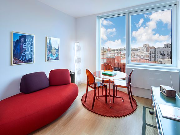 A world of wonder awaits at Forty Six Fifty; a stunning collection of brand new studio, one, and two bedroom homes in Inwood, overlooking Fort Tryon Park and The Cloisters at the northern tip of Manhattan. Striking architecture and sustainable design by Arden Group deliver a lifestyle that exceeds expectations, marrying the quiet elegance of Inwood with seamless access to the rest of the city. Biophilic features like a living green lobby and landscaped rooftop offer a home in-tune with nature. Lush terraces and manicured gardens allow for a sense of escape from the grind, while some of the city's most beloved park spaces provide the ideal backyard. Go beyond the ordinary, at a lifestyle oasis that features stunning interiors and extraordinary amenities, all with panoramic park and river views. Enjoy meticulously-crafted residences with generous interiors and state-of-the-art finishes, as part of an experience in truly holistic living that goes beyond and above anything that has come before. Amenity Features Include: Double Height Wood-Paneled Lobby, with Stone Fireplace Feature Wall and Green Wall Package Room Amenity Lounge with Co-Working and Individual Phone Booths Private Lounge with Demonstration Kitchen Children's Playroom Pet Spa Resident Storage Available Bicycle Storage Available Onsite Garage Parking Available Game Lounge with Billiards, Pinball, Shuffleboard, Foosball, Video Games, Projector Screen and Wetbar Smart Lending Library Fitness Center offering Precor Equipment and Peloton Bikes Yoga Room Basketball Court Landscaped Terrace with Outdoor Lounge, Pool Table, Chaise Lounges and Barbecue Grills Residence Features: Soaring Ceilings Over 9 Luxury White Oak Vinyl Wide Plank Flooring Oversized VIEW Smart Windows Complimentary Blackout Roller Shades in Bedrooms In-Home Bosch Washer/Dryers Smart Keyless Home Entry Oak Veneer Custom Designer Vanity with Stainless Steel Pulls White Solid Surface Countertops Contessa Dama Porcelain Tiled Floors and Wet Walls Grey Waterfall Mosaic Tiled Porcelain Feature Wall Calacatta Porcelain Tile Baseboards Kohler Polished Chrome Fixtures Mirrored Medicine Cabinets with Integrated Lighting GE Stainless Steel Appliance Package with Induction Range Designer White High Gloss Cabinetry with Stainless Steel Pulls and Undercabinet Lighting Calacatta Capri Quartz Countertop and Backsplash Kohler Pull-Out Faucet in Vibrant Stainless For convenient commuting, Forty Six Fifty is located moments from multiple bus stops, the Dyckman Street Subway Station with express A Train service, the 1 Train at 107th Street Station, The West Side Highway, as well as public and private parking. Prices and features are subject to change. All apartments are exempt from rent control. All images are a combination of photography and artist renderings and are provided for illustrative purposes only.
