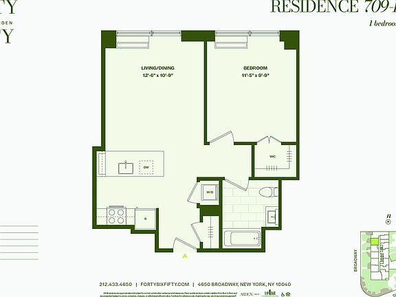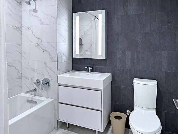 A world of wonder awaits at Forty Six Fifty; a stunning collection of brand new studio, one, and two bedroom homes in Inwood, overlooking Fort Tryon Park and The Cloisters at the northern tip of Manhattan. Striking architecture and sustainable design by Arden Group deliver a lifestyle that exceeds expectations, marrying the quiet elegance of Inwood with seamless access to the rest of the city. Biophilic features like a living green lobby and landscaped rooftop offer a home in-tune with nature. Lush terraces and manicured gardens allow for a sense of escape from the grind, while some of the city's most beloved park spaces provide the ideal backyard. Go beyond the ordinary, at a lifestyle oasis that features stunning interiors and extraordinary amenities, all with panoramic park and river views. Enjoy meticulously-crafted residences with generous interiors and state-of-the-art finishes, as part of an experience in truly holistic living that goes beyond and above anything that has come before. Amenity Features Include: - Double Height Wood-Paneled Lobby, with Stone Fireplace Feature Wall and Green Wall - Package Room - Amenity Lounge with Co-Working and Individual - Phone Booths - Private Lounge with Demonstration Kitchen - Children's Playroom - Pet Spa - Resident Storage Available - Bicycle Storage Available - Onsite Garage Parking Available - Game Lounge with Billiards, Pinball, Shuffleboard, Foosball, Video Games, Projector Screen and Wetbar - Smart Lending Library - Fitness Center offering Precor Equipment and Peloton Bikes - Yoga Room - Basketball Court - Landscaped Terrace with Outdoor Lounge, Pool Table, Chaise Lounges and Barbecue Grills Residence Features: - Soaring Ceilings Over 9' - Luxury White Oak Vinyl Wide Plank Flooring - Oversized VIEW Smart Windows - Complimentary Blackout Roller Shades in Bedrooms - In-Home Bosch Washer/Dryers - Smart Keyless Home Entry - Oak Veneer Custom Designer Vanity with Stainless Steel Pulls - White Solid Surface Countertops - Contessa Dama Porcelain Tiled Floors and Wet Walls - Grey Waterfall Mosaic Tiled Porcelain Feature Wall - Calacatta Porcelain Tile Baseboards - Kohler Polished Chrome Fixtures - Mirrored Medicine Cabinets with Integrated Lighting - GE Stainless Steel Appliance Package with Induction Range - Designer White High Gloss Cabinetry with Stainless Steel Pulls and Undercabinet Lighting - Calacatta Capri Quartz Countertop and Backsplash - Kohler Pull-Out Faucet in Vibrant Stainless For convenient commuting, Forty Six Fifty is located moments from multiple bus stops, the Dyckman Street Subway Station with express A Train service, the 1 Train at 107th Street Station, The West Side Highway, as well as public and private parking. Prices and features are subject to change. All apartments are exempt from rent control. All images are a combination of photography and artist renderings and are provided for illustrative purposes only.