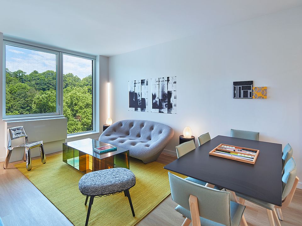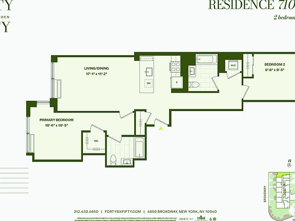 A world of wonder awaits at Forty Six Fifty; a stunning collection of brand new studio, one, and two bedroom homes in Inwood, overlooking Fort Tryon Park and The Cloisters at the northern tip of Manhattan. Striking architecture and sustainable design by Arden Group deliver a lifestyle that exceeds expectations, marrying the quiet elegance of Inwood with seamless access to the rest of the city. Biophilic features like a living green lobby and landscaped rooftop offer a home in-tune with nature. Lush terraces and manicured gardens allow for a sense of escape from the grind, while some of the city's most beloved park spaces provide the ideal backyard. Go beyond the ordinary, at a lifestyle oasis that features stunning interiors and extraordinary amenities, all with panoramic park and river views. Enjoy meticulously-crafted residences with generous interiors and state-of-the-art finishes, as part of an experience in truly holistic living that goes beyond and above anything that has come before. Amenity Features Include: - Double Height Wood-Paneled Lobby, with Stone Fireplace Feature Wall and Green Wall - Package Room - Amenity Lounge with Co-Working and Individual - Phone Booths - Private Lounge with Demonstration Kitchen - Children's Playroom - Pet Spa - Resident Storage Available - Bicycle Storage Available - Onsite Garage Parking Available - Game Lounge with Billiards, Pinball, Shuffleboard, Foosball, Video Games, Projector Screen and Wetbar - Smart Lending Library - Fitness Center offering Precor Equipment and Peloton Bikes - Yoga Room - Basketball Court - Landscaped Terrace with Outdoor Lounge, Pool Table, Chaise Lounges and Barbecue Grills Residence Features: - Soaring Ceilings Over 9' - Luxury White Oak Vinyl Wide Plank Flooring - Oversized VIEW Smart Windows - Complimentary Blackout Roller Shades in Bedrooms - In-Home Bosch Washer/Dryers - Smart Keyless Home Entry - Oak Veneer Custom Designer Vanity with Stainless Steel Pulls - White Solid Surface Countertops - Contessa Dama Porcelain Tiled Floors and Wet Walls - Grey Waterfall Mosaic Tiled Porcelain Feature Wall - Calacatta Porcelain Tile Baseboards - Kohler Polished Chrome Fixtures - Mirrored Medicine Cabinets with Integrated Lighting - GE Stainless Steel Appliance Package with Induction Range - Designer White High Gloss Cabinetry with Stainless Steel Pulls and Undercabinet Lighting - Calacatta Capri Quartz Countertop and Backsplash - Kohler Pull-Out Faucet in Vibrant Stainless For convenient commuting, Forty Six Fifty is located moments from multiple bus stops, the Dyckman Street Subway Station with express A Train service, the 1 Train at 107th Street Station, The West Side Highway, as well as public and private parking. Prices and features are subject to change. All apartments are exempt from rent control. All images are a combination of photography and artist renderings and are provided for illustrative purposes only.