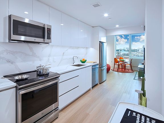 A world of wonder awaits at Forty Six Fifty; a stunning collection of brand new studio, one, and two bedroom homes in Inwood, overlooking Fort Tryon Park and The Cloisters at the northern tip of Manhattan. Striking architecture and sustainable design by Arden Group deliver a lifestyle that exceeds expectations, marrying the quiet elegance of Inwood with seamless access to the rest of the city. Biophilic features like a living green lobby and landscaped rooftop offer a home in-tune with nature. Lush terraces and manicured gardens allow for a sense of escape from the grind, while some of the city's most beloved park spaces provide the ideal backyard. Go beyond the ordinary, at a lifestyle oasis that features stunning interiors and extraordinary amenities, all with panoramic park and river views. Enjoy meticulously-crafted residences with generous interiors and state-of-the-art finishes, as part of an experience in truly holistic living that goes beyond and above anything that has come before. Amenity Features Include: - Double Height Wood-Paneled Lobby, with Stone Fireplace Feature Wall and Green Wall - Package Room - Amenity Lounge with Co-Working and Individual - Phone Booths - Private Lounge with Demonstration Kitchen - Children's Playroom - Pet Spa - Resident Storage Available - Bicycle Storage Available - Onsite Garage Parking Available - Game Lounge with Billiards, Pinball, Shuffleboard, Foosball, Video Games, Projector Screen and Wetbar - Smart Lending Library - Fitness Center offering Precor Equipment and Peloton Bikes - Yoga Room - Basketball Court - Landscaped Terrace with Outdoor Lounge, Pool Table, Chaise Lounges and Barbecue Grills Residence Features: - Soaring Ceilings Over 9' - Luxury White Oak Vinyl Wide Plank Flooring - Oversized VIEW Smart Windows - Complimentary Blackout Roller Shades in Bedrooms - In-Home Bosch Washer/Dryers - Smart Keyless Home Entry - Oak Veneer Custom Designer Vanity with Stainless Steel Pulls - White Solid Surface Countertops - Contessa Dama Porcelain Tiled Floors and Wet Walls - Grey Waterfall Mosaic Tiled Porcelain Feature Wall - Calacatta Porcelain Tile Baseboards - Kohler Polished Chrome Fixtures - Mirrored Medicine Cabinets with Integrated Lighting - GE Stainless Steel Appliance Package with Induction Range - Designer White High Gloss Cabinetry with Stainless Steel Pulls and Undercabinet Lighting - Calacatta Capri Quartz Countertop and Backsplash - Kohler Pull-Out Faucet in Vibrant Stainless For convenient commuting, Forty Six Fifty is located moments from multiple bus stops, the Dyckman Street Subway Station with express A Train service, the 1 Train at 107th Street Station, The West Side Highway, as well as public and private parking. Prices and features are subject to change. All apartments are exempt from rent control. All images are a combination of photography and artist renderings and are provided for illustrative purposes only.