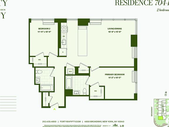 A world of wonder awaits at Forty Six Fifty; a stunning collection of brand new studio, one, and two bedroom homes in Inwood, overlooking Fort Tryon Park and The Cloisters at the northern tip of Manhattan. Striking architecture and sustainable design by Arden Group deliver a lifestyle that exceeds expectations, marrying the quiet elegance of Inwood with seamless access to the rest of the city. Biophilic features like a living green lobby and landscaped rooftop offer a home in-tune with nature. Lush terraces and manicured gardens allow for a sense of escape from the grind, while some of the city's most beloved park spaces provide the ideal backyard. Go beyond the ordinary, at a lifestyle oasis that features stunning interiors and extraordinary amenities, all with panoramic park and river views. Enjoy meticulously-crafted residences with generous interiors and state-of-the-art finishes, as part of an experience in truly holistic living that goes beyond and above anything that has come before. Upfront fees to be paid, not included in the monthly rent, are: Application fee: $20 per application Holding fee: $500, applied to the first months rent, refundable within 72 hours if cancelled Security deposit: Equal to One Months Rent Pet Fee: $400 non-refundable Pet Rent: $50 per month per pet Storage fee: $75 - $125 per month Bike storage fee: $15 per month per bike Residents are responsible for electricity- submetered based on usage, billed monthly Rose Associates is the exclusive broker/agent for the Landlord (Landlord's Agent) for this property. This advertisement is not intended to create any other agency relationships between a real estate licensee and the Landlord. Prospective renters, their brokers and/or agents understand that neither the Landlord nor Landlord's Agent will charge or collect fees to a prospective renter in connection with this property except for fees as permitted by law and disclosed above. Neither Landlord nor Landlord's Agent assume responsibility for any brokerage fees incurred by a prospective renter in connection with this property under any direct agreement they have entered into with another real estate licensee. This listing is being advertised to prospective renters only and should not be re-published.