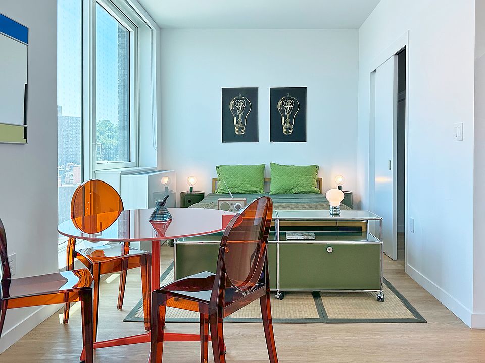A world of wonder awaits at Forty Six Fifty; a stunning collection of brand new studio, one, and two bedroom homes in Inwood, overlooking Fort Tryon Park and The Cloisters at the northern tip of Manhattan. Striking architecture and sustainable design by Arden Group deliver a lifestyle that exceeds expectations, marrying the quiet elegance of Inwood with seamless access to the rest of the city. Biophilic features like a living green lobby and landscaped rooftop offer a home in-tune with nature. Lush terraces and manicured gardens allow for a sense of escape from the grind, while some of the city's most beloved park spaces provide the ideal backyard. Go beyond the ordinary, at a lifestyle oasis that features stunning interiors and extraordinary amenities, all with panoramic park and river views. Enjoy meticulously-crafted residences with generous interiors and state-of-the-art finishes, as part of an experience in truly holistic living that goes beyond and above anything that has come before. Amenity Features Include: - Double Height Wood-Paneled Lobby, with Stone Fireplace Feature Wall and Green Wall - Package Room - Amenity Lounge with Co-Working and Individual - Phone Booths - Private Lounge with Demonstration Kitchen - Children's Playroom - Pet Spa - Resident Storage Available - Bicycle Storage Available - Onsite Garage Parking Available - Game Lounge with Billiards, Pinball, Shuffleboard, Foosball, Video Games, Projector Screen and Wetbar - Smart Lending Library - Fitness Center offering Precor Equipment and Peloton Bikes - Yoga Room - Basketball Court - Landscaped Terrace with Outdoor Lounge, Pool Table, Chaise Lounges and Barbecue Grills Residence Features: - Soaring Ceilings Over 9' - Luxury White Oak Vinyl Wide Plank Flooring - Oversized VIEW Smart Windows - Complimentary Blackout Roller Shades in Bedrooms - In-Home Bosch Washer/Dryers - Smart Keyless Home Entry - Oak Veneer Custom Designer Vanity with Stainless Steel Pulls - White Solid Surface Countertops - Contessa Dama Porcelain Tiled Floors and Wet Walls - Grey Waterfall Mosaic Tiled Porcelain Feature Wall - Calacatta Porcelain Tile Baseboards - Kohler Polished Chrome Fixtures - Mirrored Medicine Cabinets with Integrated Lighting - GE Stainless Steel Appliance Package with Induction Range - Designer White High Gloss Cabinetry with Stainless Steel Pulls and Undercabinet Lighting - Calacatta Capri Quartz Countertop and Backsplash - Kohler Pull-Out Faucet in Vibrant Stainless For convenient commuting, Forty Six Fifty is located moments from multiple bus stops, the Dyckman Street Subway Station with express A Train service, the 1 Train at 107th Street Station, The West Side Highway, as well as public and private parking. Prices and features are subject to change. All apartments are exempt from rent control. All images are a combination of photography and artist renderings and are provided for illustrative purposes only.