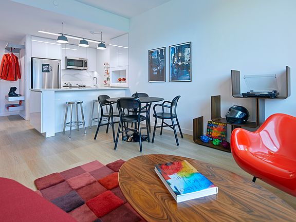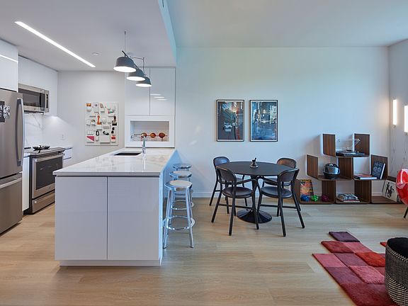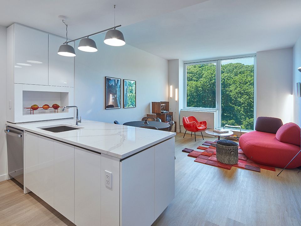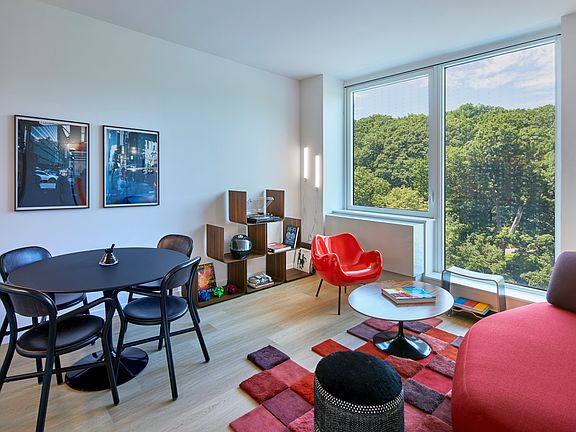 A world of wonder awaits at Forty Six Fifty; a stunning collection of brand new studio, one, and two bedroom homes in Inwood, overlooking Fort Tryon Park and The Cloisters at the northern tip of Manhattan. Striking architecture and sustainable design by Arden Group deliver a lifestyle that exceeds expectations, marrying the quiet elegance of Inwood with seamless access to the rest of the city. Biophilic features like a living green lobby and landscaped rooftop offer a home in-tune with nature. Lush terraces and manicured gardens allow for a sense of escape from the grind, while some of the city's most beloved park spaces provide the ideal backyard. Go beyond the ordinary, at a lifestyle oasis that features stunning interiors and extraordinary amenities, all with panoramic park and river views. Enjoy meticulously-crafted residences with generous interiors and state-of-the-art finishes, as part of an experience in truly holistic living that goes beyond and above anything that has come before. Amenity Features Include: - Double Height Wood-Paneled Lobby, with Stone Fireplace Feature Wall and Green Wall - Package Room - Amenity Lounge with Co-Working and Individual - Phone Booths - Private Lounge with Demonstration Kitchen - Children's Playroom - Pet Spa - Resident Storage Available - Bicycle Storage Available - Onsite Garage Parking Available - Game Lounge with Billiards, Pinball, Shuffleboard, Foosball, Video Games, Projector Screen and Wetbar - Smart Lending Library - Fitness Center offering Precor Equipment and Peloton Bikes - Yoga Room - Basketball Court - Landscaped Terrace with Outdoor Lounge, Pool Table, Chaise Lounges and Barbecue Grills Residence Features: - Soaring Ceilings Over 9' - Luxury White Oak Vinyl Wide Plank Flooring - Oversized VIEW Smart Windows - Complimentary Blackout Roller Shades in Bedrooms - In-Home Bosch Washer/Dryers - Smart Keyless Home Entry - Oak Veneer Custom Designer Vanity with Stainless Steel Pulls - White Solid Surface Countertops - Contessa Dama Porcelain Tiled Floors and Wet Walls - Grey Waterfall Mosaic Tiled Porcelain Feature Wall - Calacatta Porcelain Tile Baseboards - Kohler Polished Chrome Fixtures - Mirrored Medicine Cabinets with Integrated Lighting - GE Stainless Steel Appliance Package with Induction Range - Designer White High Gloss Cabinetry with Stainless Steel Pulls and Undercabinet Lighting - Calacatta Capri Quartz Countertop and Backsplash - Kohler Pull-Out Faucet in Vibrant Stainless For convenient commuting, Forty Six Fifty is located moments from multiple bus stops, the Dyckman Street Subway Station with express A Train service, the 1 Train at 107th Street Station, The West Side Highway, as well as public and private parking. Prices and features are subject to change. All apartments are exempt from rent control. All images are a combination of photography and artist renderings and are provided for illustrative purposes only.