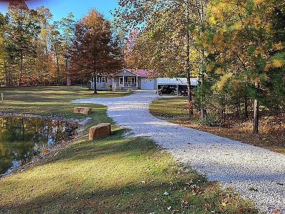 Be Nature's Neighbor!!! Enjoy the seasons from this lovely home nestled in the midst of trees on this 16.8+- acre tract. Hunters Paradise and Privacy and extra space to expand with a gorgeous pond dug in 2021 that leads to a waterfall. The interior of this immaculate 2 bedroom, 1 bath home with open floor plan was remodeled in 2021. Sparkling kitchen has granite countertops and stainless appliances and a breakfast bar. Enjoy the fabulous view and forest animals. Back yard has 6' black chain link fence for you children or animals to play. Call today for your private tour.