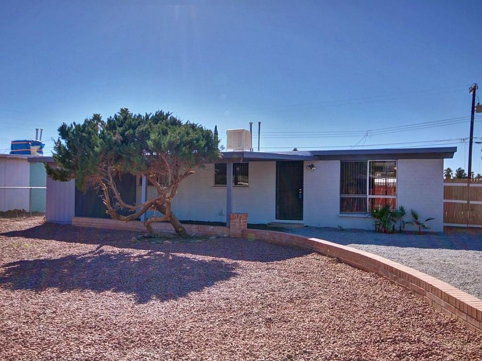 Charming move-in ready bungalow style home with lots of character and great curb appeal. Warm & welcoming palette, beautiful tile floor throughout, window blinds, ceiling fans, and patio access from eat-in kitchen. Stylish kitchen counters and white wood retro cabinets with hardware. Spacious bedrooms, ample closets, and 1.5 baths. Interior laundry room. Large backyard with covered patio is a blank canvas for your future desert oasis. All appliances included!A must see home on your list.