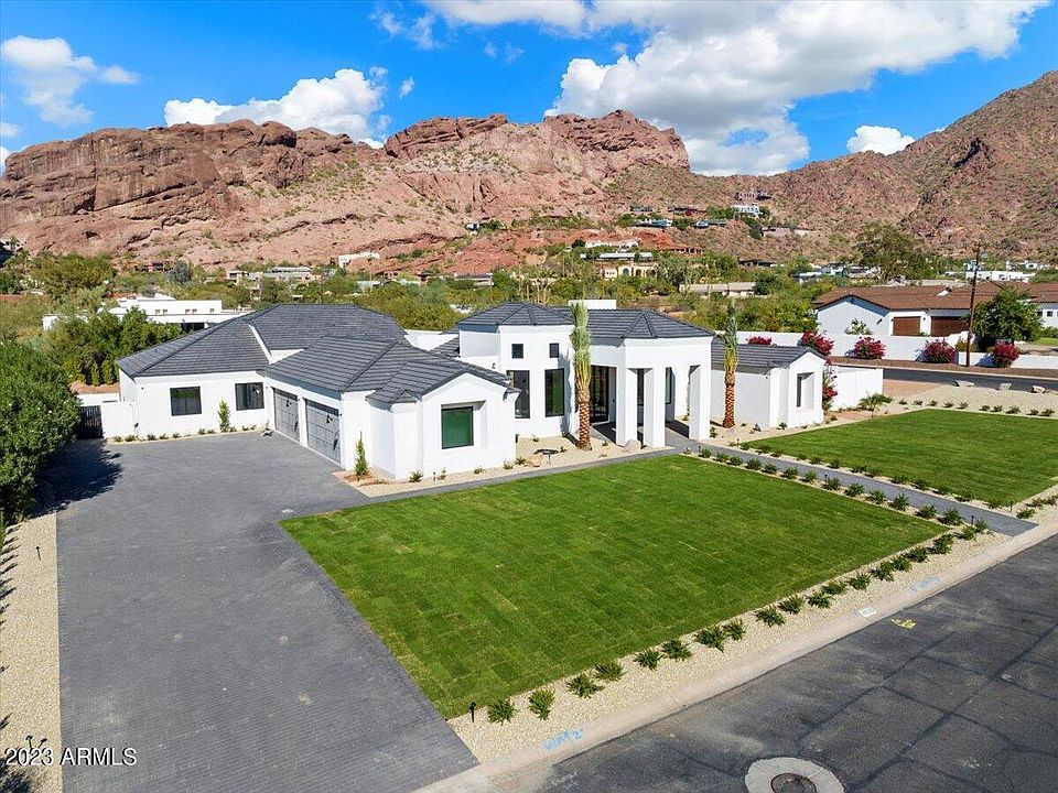 Experience Camelback Mountain views from this newly completed residence by Norton Luxury Homes. Offering 4 Bedrooms, 6 Bathrooms and nearly 5,500 Sq Ft, this gorgeous single level property on almost an acre, features a neutral and bright design throughout, tall ceilings, located in one of the most sought after neighborhoods. The Kitchen features Sub Zero and Wolf appliances, custom cabinetry and a large island. The primary suite features a marble fireplace, bathroom with dual vanities/dual water closets and a spacious closet with washer/dryer! All of the bedrooms are generously sized ensuites. The property offers a 4 Car Garage, separate office and game room! The large backyard features a pool bathroom, covered patio space, and mature ficus trees. Backyard to be completed within 45 days.