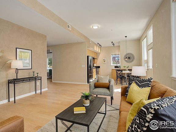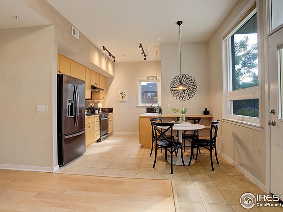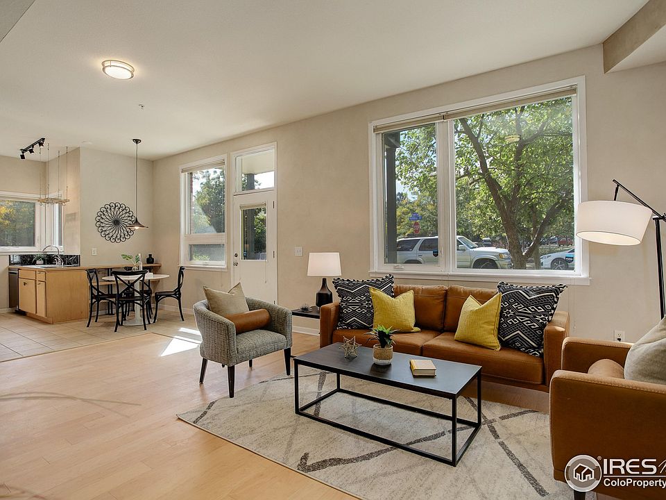 Discover modern living at this stunning two-bedroom, two-bath End Unit condo! It is flooded with natural light and offers breathtaking foothill views right across from a large park. Nestled in the vibrant Holiday Neighborhood, enjoy easy access to local restaurants, coffee shops, and the North Boulder art district corridor. With its private front and back entrances, this home feels just like a single-family residence. Recent upgrades include sleek black stainless appliances, new hardwood floors, and fresh paint, complemented by a striking barn wood accent wall. The spacious layout features high ceilings and a charming breakfast nook that overlooks the beautifully landscaped front patio. The main floor master suite boasts a walk-in closet and ensuite bath. Conveniently located near shopping, dining, public transport, and scenic trails, this home is a perfect blend of comfort and community!
