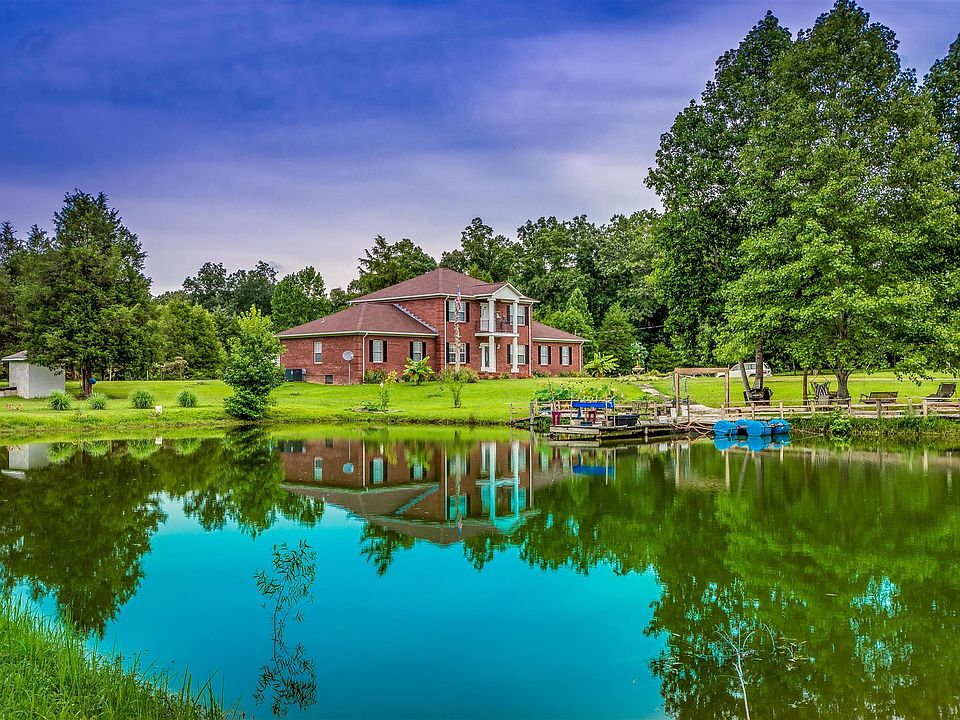 Beautiful, private, and spacious 4 bedroom 3.5 bath brick home with great floor plan sitting on 15 acres. Stocked lake with dock, 1200SqFt shop, RV storage and hookup, frontage on two roads, NEW ROOF, landscaping, convenient to town, and SO MUCH MORE. Call today to schedule a viewing.