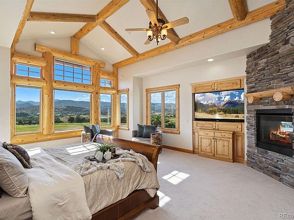 Remarkable estate located on 35 acres of land w sweeping mountain views, the valley & Devils Back Bone Ridge. Built to resemble one’s own Four Seasons Resort! Located just outside of Loveland in the exclusive gated community of Indian Creek Ranch! Driving on the winding road & driveway you will feel the prestige of Colorado living at its best. You will be greeted by the most amazing water feature seldomly found in a private residence. Step inside & discover the highest quality finishes & breathtaking views from every window. Be enamored by all the tall log beams & pillars. Soaring ceilings, inlaid stone flooring & large picture windows. The 2-story rock faced fireplace is one of the many features of the huge great room. The chef's kitchen boasts custom flooring, knotty alder cabinets, wi-fi appliances & 2 enormous pantries! The main level is also home to the primary bedroom w access to the huge deck & amazing mountain views! A 2-sided rock fireplace welcomes you into the luxurious spa like bathroom w inlaid rock flooring & handsome tile, granite & alder cabinets. A large closet w lots of built-ins is a plus. The upper level is home to 3 huge bedrooms each w an ensuite bath & its own views plus a large loft & library. The lower level walkout is home to a heated indoor pool w/ slide, gym, amazing whiskey bar w wine cellar, home theater & your own private disco! Oversized 4 car garage (ask about some of the toys for purchase) & laundry on each level. Geothermal, radiant heat, smart technology security system! For more photos visit W3RANCHCO.com . Just 15 minutes to Loveland, Carter Lake & Horsetooth Reservoir, 40 minutes to Fort Collins/CSU. 40 minutes to Boulder/CU & Estes Park & just over an hour to Denver/DIA. There are 3 adjoining 35 acre lots available, so could be up to 140 acres. Owner will consider carrying financing. For additional adjoining properties, see Lot 4 MLS #8874669, Lot 7 MLS #8173739, & Lot 8 MLS #5841387. Can purchase all four plots at a discount