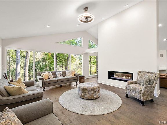 Introducing an amazing opportunity to own this rare contemporary estate located in the heart of Bloomfield Hills. Set on over two private acres and tucked deep into the property for unmatched privacy, this home is surrounded by mature trees and lush landscape, offering a serene and secluded setting. Inside, soaring ceilings and floor-to-ceiling windows fill the home with an abundance of natural light, creating an inviting sense of openness throughout. This beautifully renovated home features a modern kitchen with quartz countertops, new premium stainless steel appliances, custom cabinetry, and an adjoining breakfast nook that offers direct access to the expansive deck overlooking the scenic backyard. Additional updates include a new roof, upgraded furnaces and HVAC system, new attic insulation, and a stunning see-through two-way fireplace that anchors the spacious dining and family areas. The main level also offers a large office or den with custom built-ins, a convenient first-floor laundry room, and generous storage space throughout. The luxurious first-floor primary suite features an expansive layout, a walk-in closet, and a spa-like bathroom with a soaking tub and a curbless walk-in shower. Upstairs, three additional oversized bedrooms are paired with two updated full bathrooms. The walk-out lower level adds another layer of flexibility and comfort, complete with a large recreation area, full kitchen, additional bedroom with ensuite full bath, craft or game room, and extensive storage. A circular driveway and oversized garage provide ample parking and functionality, while the long, private drive ensures a grand sense of arrival. Residents benefit from award-winning Bloomfield Hills Schools and close proximity to top-rated restaurants, premier shopping, and elite private clubs. With 5 bedrooms, 6 bathrooms, and located in the best location of Bloomfield Hills and close proximity to the best restaurants, schools, convenience stores, and so much more. Welcome Home!