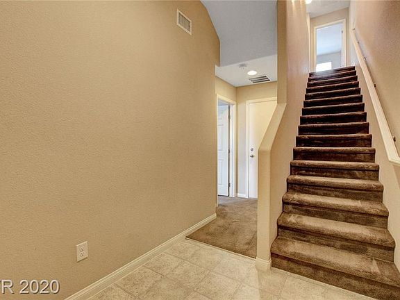 Spacious three story town home is an end unit with lots of light. On first floor is a bedroom with walk in closet and full bath. Great for home office or game room. Second floor has over-sized owner's suite with walk in closets. The owner's bath has dual sinks and shower/tub combo. Second bedroom is also on second floor. Third floor is an open great room with kitchen and family/dining room all combined. Granite countertops in kitchen, island and all stainless appliances. A staircase off to the side of the great room leads to a terrific rooftop deck with panoramic views of the valley and the Strip. Great location within walking distance to LVAC, Sprouts and other great shopping/restaurants.