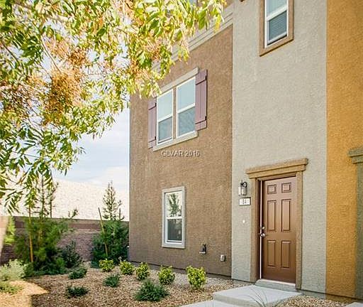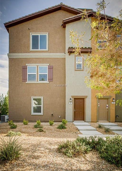 1 year old townhome with a rooftop deck! Its an end unit so only attached to a neighbor on one side. Conveniently located less than 5 mins from I-215, LVAC and a retail complex with lots of shopping options and restaurants. Each of the 3 bedrooms has its own attached bath. Open layout upstairs with the living room, kitchen and dining area which connects to the roof top deck with amazing views. Gated community w/ pool