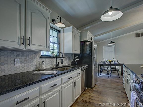 You won't believe this stylish remodel! Impressive granite & stainless kitchen opens to breakfast nook and vaulted family room with wood burning fireplace. Fresh paint, luxury laminate floors throughout, new lighting, appliances fixtures & more. Impeccably updated baths are light and bright with subway tile, new vanities and on trend tile flooring. Great storage, large bedrooms. Freshly painted full brick exterior with side loading garage. New porch & patio. New roof. Newer windows and HVAC. Safe room