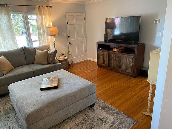 Check out this great La Mesa home nestled in the amazing neighborhood of Rolando! This home has beautiful hardwood floors throughout with a tiled bathroom, kitchen and dining area. Incredible natural light throughout the home, including a brilliant skylight in the bathroom with a bathtub/shower combo. Spacious custom closets in every bedroom and an oversized attached 2-car garage with tons of storage and workspace! New paint inside and out! The lot is perfect for a family or those who like to entertain. Kitchen includes refrigerator/freezer, microwave, gas oven and stovetop, garbage disposal and a window that provides a great view of the backyard. Both front and backyards are beautifully manicured and professionally maintained. The backyard boasts a large covered patio and storage shed, and is fully enclosed with a wooden fence for privacy. The property is adorned with trees, including: apple, lemon, avocado, pomegranate, plumeria, palms, and beautiful roses! Just steps from Rolando Elementary School (K-6) and close to the Language Academy (K-8), La Mesa Arts Academy (4-8) and Helix High School. Close to parks, shopping, and restaurants, and easily accessible to main freeways for an easy commute throughout the county. Please feel free to contact me personally to view the property! Landlord pays for gardener. Washer and dryer included in the garage and are the responsibility of the occupant to maintain. Brand new HVAC. Sorry, no dogs. Owner pays for gardener. Washer and dryer included in garage, but are to be maintained by occupant. Brand new HVAC!