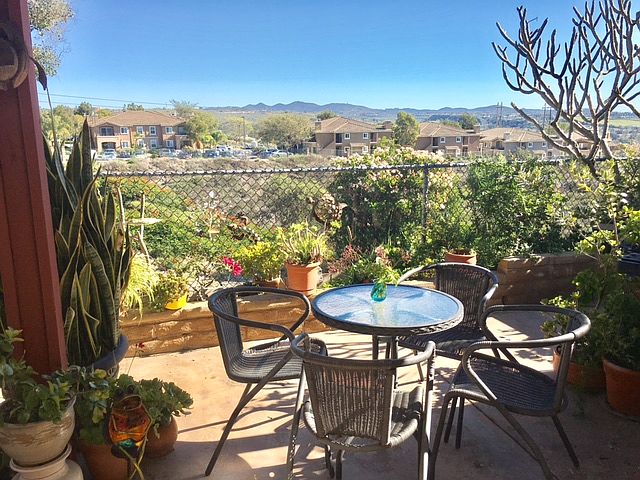 Panoramic Canyon, Mountain & Hill Views NEW hardwood flooring, upgraded windows, end unit with small private patio/yard. Low HOA dues $260, pool hot tub, tennis, basket,ball,Calavera Hill Trails biking & hiking. Appx. 3 miles to the beach village & restaurants