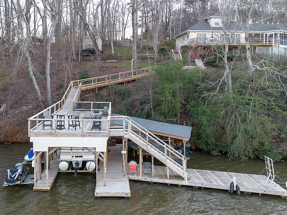 Enjoy captivating views of Badin Lake and mountain ranges! With amazing sunsets, sunrises and deep water, this home is the epitome of lake living! Main floor has a wonderful living room & kitchen along with the primary bedroom with bathroom & full bathroom for convenient living. The large windows and glass door overlooking the water is simply spectacular! The large bonus room upstairs offers endless possibilities! The basement holds another bedroom, bathroom & great bonus room! Venturing outside you will find an enormous screened porch with cathedral ceilings and sprawling views of Badin Lake making this an entertainers dream! The breathtaking water and mountain views consume all decking and porches that this property offers! The newly built boathouse with 2 slips has a large top deck to relax on and 2 electric personal watercraft lifts! With a new roof placed in 2023, this lake house is a must see!