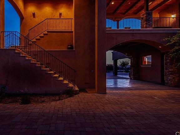 This beautiful Tuscan style estate of app. 6,000 square feet is located on 82+- acres with an app. 47 acre vineyard leased to a world renowned winery . It has a secluded and beautiful location yet is less then 2 miles from the city limits of Paso Robles. The home has many features including beautiful wood work throughout, a fantastic formal living and entertainment room, large family room with bar, a spacious gourmet kitchen and a beautiful formal dining room with a muraled wall. There is also an elevator to easily reach the beautiful upstairs master suite and other bedrooms as well as a stunning staircase. Outside you will find an infinity pool with built-in spa and a covered outside patio and entertainment center with sweeping views of the vineyard and the western hills. Other features include a breakfast nook, butler's pantry, a 4 car garage and a 32 x 80 barn/shop with a high roll up door for RV storage. A very special and unique property for the discerning buyer.