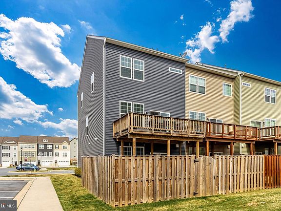 Picture perfect END UNIT town home with 3 finished levels, huge deck, walk out lower level with patio, lush lawn, privacy fence and two-car garage with ample additional parking in driveway and plenty of guest parking. The interior features three bedrooms, 3-1/2 baths, all neutral paint & carpet, true hardwood floors on the entire main level, lots of natural light, kitchen with stainless appliances, granite and upgraded cabinetry, huge pantry and dining area large enough for gatherings with all your friends and family. The upper level features a primary bedroom with tray ceiling and private bath with shower, huge closet, plus super large upper level laundry room with full size washer/dryer, two nice size bedrooms and an additional shared bath. The lower level is a great WFH space or recreation room with a full bath and and sliding door to the private back yard, extra large with an end unit, fully fenced with a custom 10' x 20' Nicolock paver patio in slate grey. The location is amazing -- large open park area in front of the town home promises privacy and green space views, no one on the side and bonus green space behind. The main living area of the home faces west giving you the most amazing, unobstructed sunset views. The deck at the rear of the home is east facing, so in the height of summer this beautiful outdoor space stays comfortable, fully usable and your guests are shielded from the hot afternoon sun and heat. This home is minutes from 270, route 15, downtown Frederick and lots of great shopping, restaurants and entertainment. Owner prefers quick closing and NO rent back needed. LOW HOA AND NO CITY TAXES!