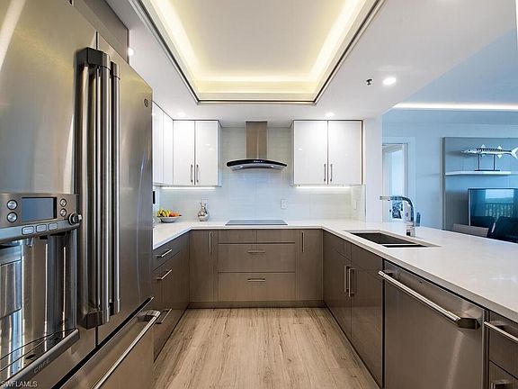 Indulge in the best that the luxurious Naples beachfront lifestyle has to offer. This exquisitely updated, 6th floor, 2-bedroom, 2 bath residence provides breathtaking views of the Gulf from Naples to Sanibel Island. Enjoy sunsets and warm gulf breezes from your screened in, oversized lanai. The open flowing floorplan is perfectly appointed with custom finishes and outstanding attention to detail. The vast great room boasts an open kitchen concept with an expansive counter bar and separate dining area. Additional features include recessed lighting throughout, bar with wine refrigerator, high-end appliances, walk-in closets, spacious master en-suite, one assigned deeded covered parking space, and extra storage. Vistas at Park Shore is a premier high-rise building with resort style amenities including a large beachside pool and spa, social room, library, fitness center, sauna, steam room, and four guest suites. Steps to Venetian Village & central to all that Naples has to offer from the downtown district of 5th Ave S & 3rd St, to Waterside Shops & Mercato for upscale dining, shopping & entertainment. Owners in Vistas can also lease or purchase a boat slip in the Venetian Yacht Club.