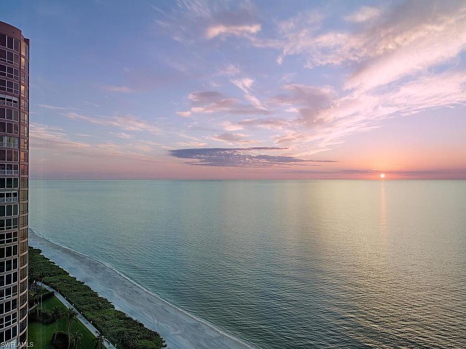 With its sweeping direct Gulf views and breathtaking sunsets, this penthouse is the ultimate in beachfront living. The open floor plan with floor to ceiling windows and access to a fabulous screened-in balcony from the spacious living room and both bedrooms further enhances this coastal treasure. Electric blinds and hurricane shutters provide privacy and safety. This impressive residence features a neutral palette, high quality finishes, gorgeous granite and unique light fixtures personifying luxurious living. Vistas at Park Shore offers stunning views along the coast line of the Gulf of Mexico. This high-rise condominium was built by The Lutgert Companies and features all the amenities one would expect in a first-class Park Shore building. The recently updated pool and cabana area with incredible views of the blue, green Gulf waters and magnificent sunsets is the center focal point of this luxury high rise.