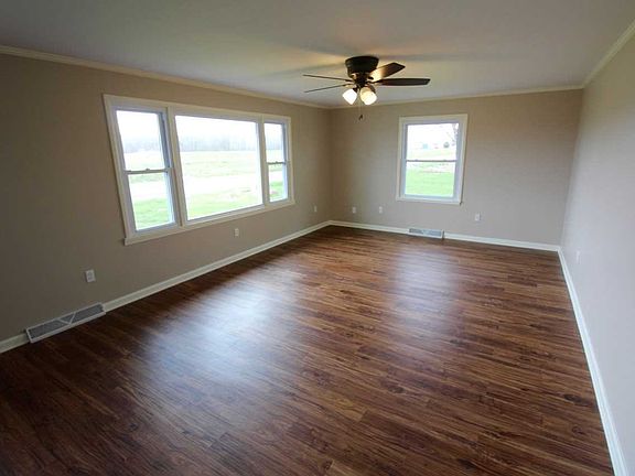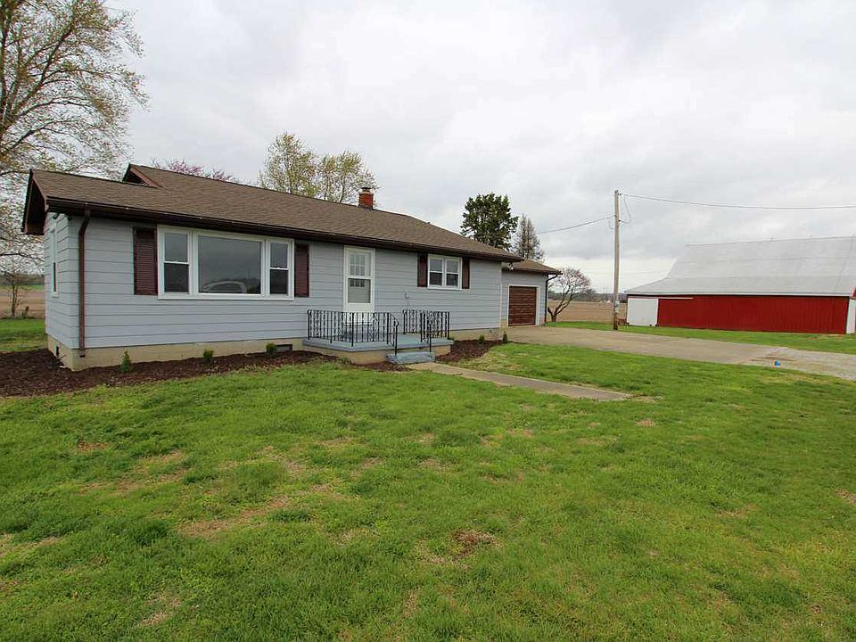 Completely remodeled country home sitting on 1.386 acres! Home features an open floor plan with spacious living room and a brand new kitchen. Kitchen included new Aristokraft cabinets, white countertops, white tiled backsplash, newly installed recessed lighting and pantry for storage. Shaw brand LVT Flooring installed in living room, kitchen, hallway, bathroom & laundry room. All 3 bedrooms have brand new carpet installed. Full bathroom has a brand new wide vanity & has a walk-in linen closet. Unfinished basement offers great storage space and storm shelter. Additional Updates per seller: New 100 amp breaker box, Gas Furnace, Replacement Windows, all new flooring, lighting, outlets & switches, bathroom vanity, repainted exterior, and landscaping. Historic red barn and outbuilding are outside for additional storage space. You'll love the country views this property has to offer!
