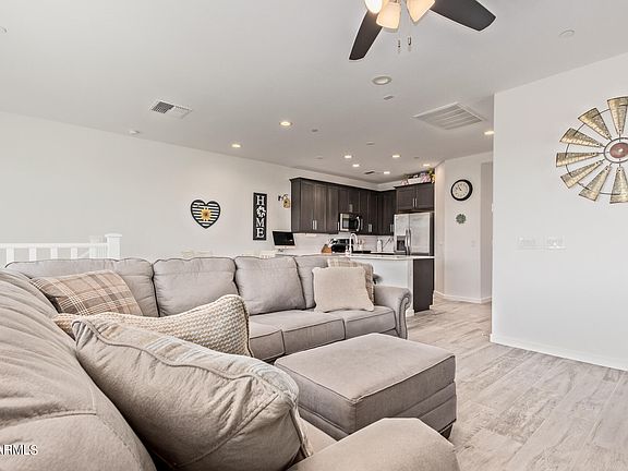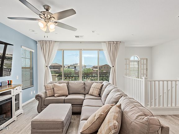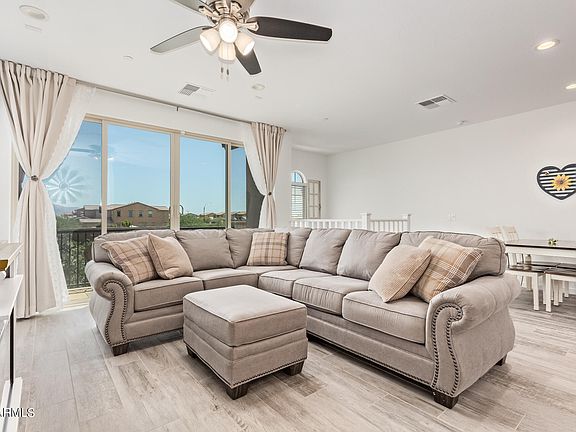 Terms! Assume with Qualify. For owner occupant only assu existing FHA 3.25% loan with approx $105k down! This 3-bed, 2-bath end-unit townhome in Towns at Eastmark is now on the market! A rear-entry two-car garage & a front patio is just the beginning of comfortable living! Enter the inviting open layout accentuated by wood-look flooring, a calming palette, & sliding doors leading you to the balcony. The gourmet kitchen comes w/ quartz counters, sleek subway tile backsplash, recessed lighting, SS appliances, a pantry, shaker cabinets w/ crown molding, & a peninsula w/ a breakfast bar. The main bedroom is a serene haven w/ plush carpeting & a private bathroom w/ dual sinks. balcony & take in the breathtaking views of the bustling Community. Like New move in medel like condition. * Terms
