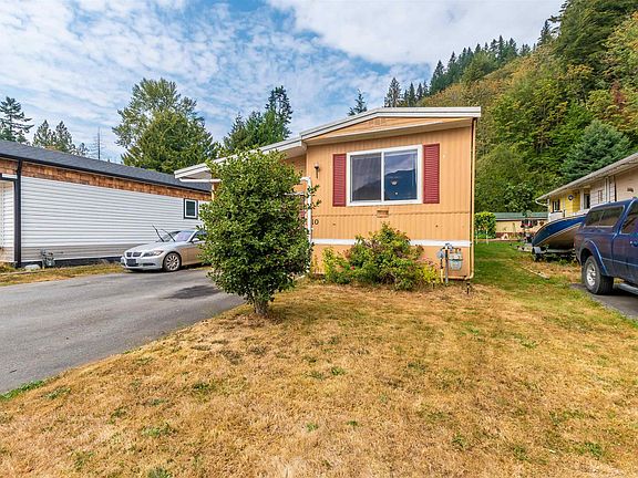 Call the beautiful Chilliwack River Valley your home! In Baker Trail Village you OWN THE LAND and there are NO PAD RENTAL FEES. Tucked away in the back of the complex this charming 3 bedroom home backs on to greenspace giving one of the most private spacious yards within the village with 5,000 sqft of usable space! The home features an open concept kitchen and living room, with stunning mountain views out the front window. This home features a large covered patio, new (2018) central air conditioning, a large ensuite bathroom off the master bedroom, convenient access under-home storage, and the garage has been converted in to a third bedroom, with brand new updated electrical in 2020. No age restrictions, or pet size restrictions!