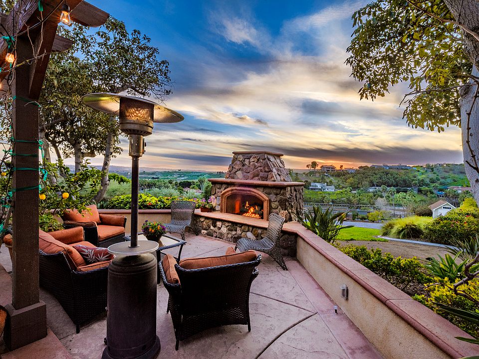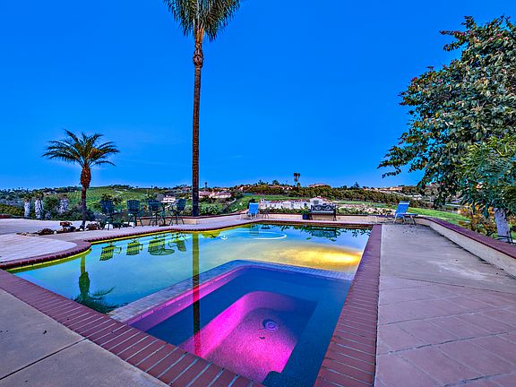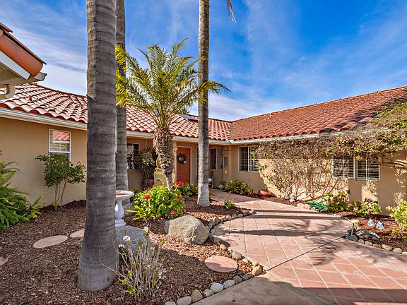 Hacienda inspired estate features single level 3 bd/2.5 ba main home, and a large 1bd/1ba guest home, all on 2.5 gated and fenced acres. The main home sits on a knoll with spectacular westerly views. An outdoor stone fireplace is surrounded by grape arbors, creating a relaxing and serene vibe. Main home features saltillo pavers and 3 fireplaces. Updated kitchen opens onto a generously sized family room. Large master opens onto the outdoor patio. Courtyard pool enjoys hillside views. 3 car garage.