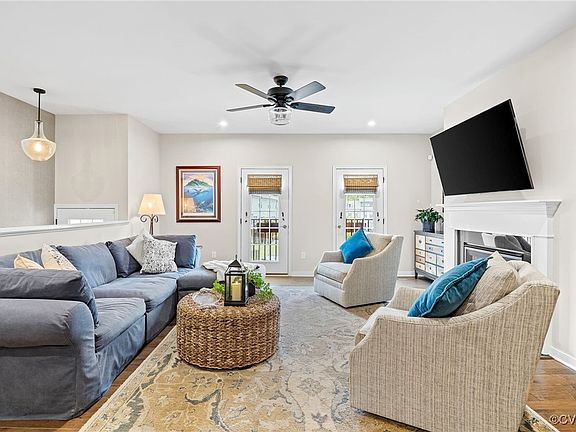 Experience maintenance-free living in the heart of Short Pump w/ this impeccably designed & maintained 2019 East facing townhome w/ NO SHARED FLOORS! Boasting seamless, open-concept living, this home is ideal for entertaining & comes complete w/ custom Graber blinds, hardwood floors & recessed lighting throughout the main living areas. Upon entry on the 2nd level, you're greeted by an inviting family room featuring a gas fireplace, built-in display shelves, a ceiling fan & two doors w/ screens that can be opened to let in summer breezes. The upgraded kitchen is a chef's delight, w/ a spacious center island w/ quartz counters & barstool area, extended soft-close cabinets, under-cabinet lights, tile backsplash, additional granite countertops, a walk-in pantry w/ custom shelves, gas cooking, stainless steel appliances & a farmhouse sink. Adjacent to the kitchen, is the dining area w/ chandelier & a beautiful dry bar w/ glass-front cabinets, quartz counters & a marble backsplash. Enjoy relaxing on the rear deck that overlooks a private yard BACKING UP TO WOODS! Upstairs, the primary suite offers two expansive walk-in closets, one of which has been fully customized w/ high-end built-ins. The ensuite primary bath features a luxurious tiled Roman shower, double vanity, water closet, linen closet & tile floor. Bedroom 2 boasts a walk-in custom closet w/ high-end built-ins, while bedroom 3 offers a spacious double-door closet. A full hall bath w/ a tub/shower combo completes the third floor. The first floor, featuring a combination of hardwood and carpet, includes a half bath, direct access to the PRIVATE & FENCED backyard, and serves as an excellent secondary entertainment space. Additionally, the first floor provides direct access to the oversized 2-car garage. Community amenities include: pool, clubhouse, fitness center, outdoor pavilion w/ grills, playground, & walking trails. Enjoy the convenience of walking to nearby shopping & easy access to commuter routes such as GRTC, 288, I-64, I-295.