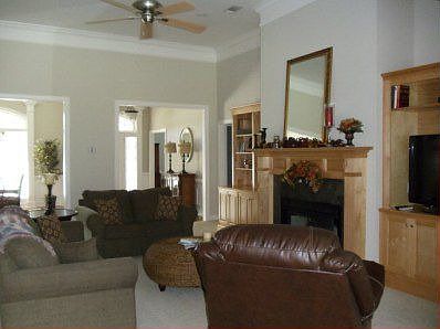 Large gorgeous lot in Stone Creek, with a view of golf course and woods. Spacious yard with nice landscaping. Immaculate interior finishes with 10 ft ceilings, pleasing color scheme(freshly painted), crown molding. Wonderful split floor plan. Living room/office near front of the home. Custom cabinets and builtin cabinetry in the family room. Granite countertops and stainless appliances in the kitchen. Move in ready condition. Sunroom with a wall of windows overlooks the open patio and lawn. Laundry includes built in cabinets and sink. http://www.4652GreenIsland.com?look=MLS