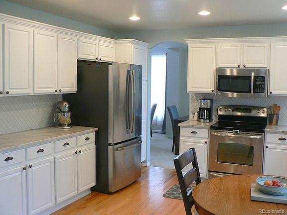 This 4-bedroom, 4-bath home shows Pride of Ownership. Situated at the end of a quiet cul-de-sac in the very desirable Meadow Park neighborhood - one of Thornton's best-kept-secrets. Super amenities with two great parks and a community pool for your family to enjoy. All the work is already done for you - newly remodeled open kitchen with new back splash and gorgeous quartzine counter tops. Plus updated light fixtures throughout, new paint in multiple rooms, new tile flooring in the master bathroom, custom rustic mantel, new roof shingles in 2018 and the refrigerator, washer and dryer are 2 years new. Huge master bedroom with custom built-ins plus a finished basement with a wet bar, bedroom and full bath. Set the showing now - no disappointments here!