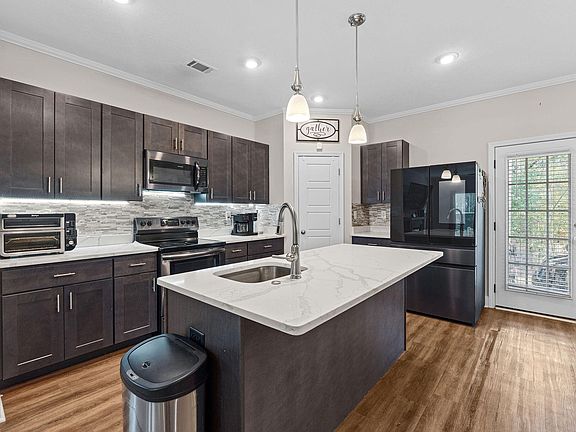 At the heart of the home is a large great room that flows seamlessly into the expansive kitchen, creating an open and inviting space perfect for everyday living and entertaining. The kitchen offers a generous island, abundant cabinetry, and modern finishes. Just off the main living area, enjoy the outdoors on the covered rear porch, overlooking the fenced-in backyard that provides privacy and plenty of room to play.